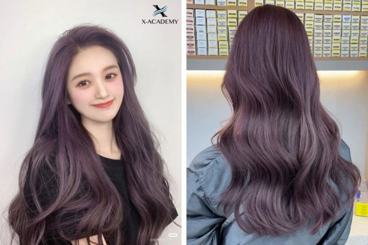 Kiểu tóc màu nâu khói ánh tím cho nữ