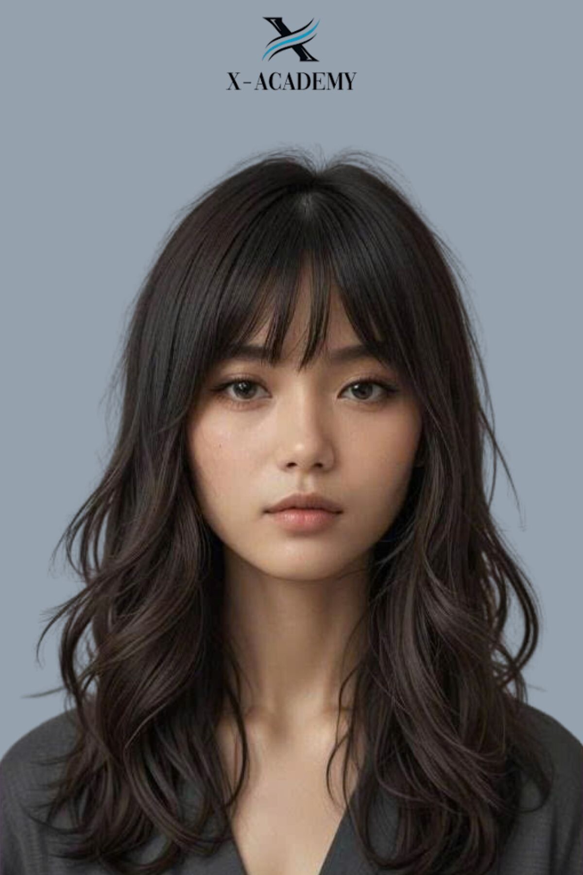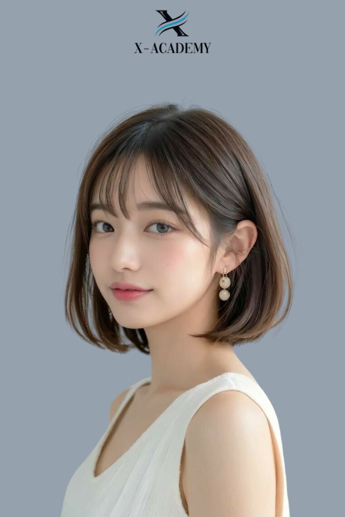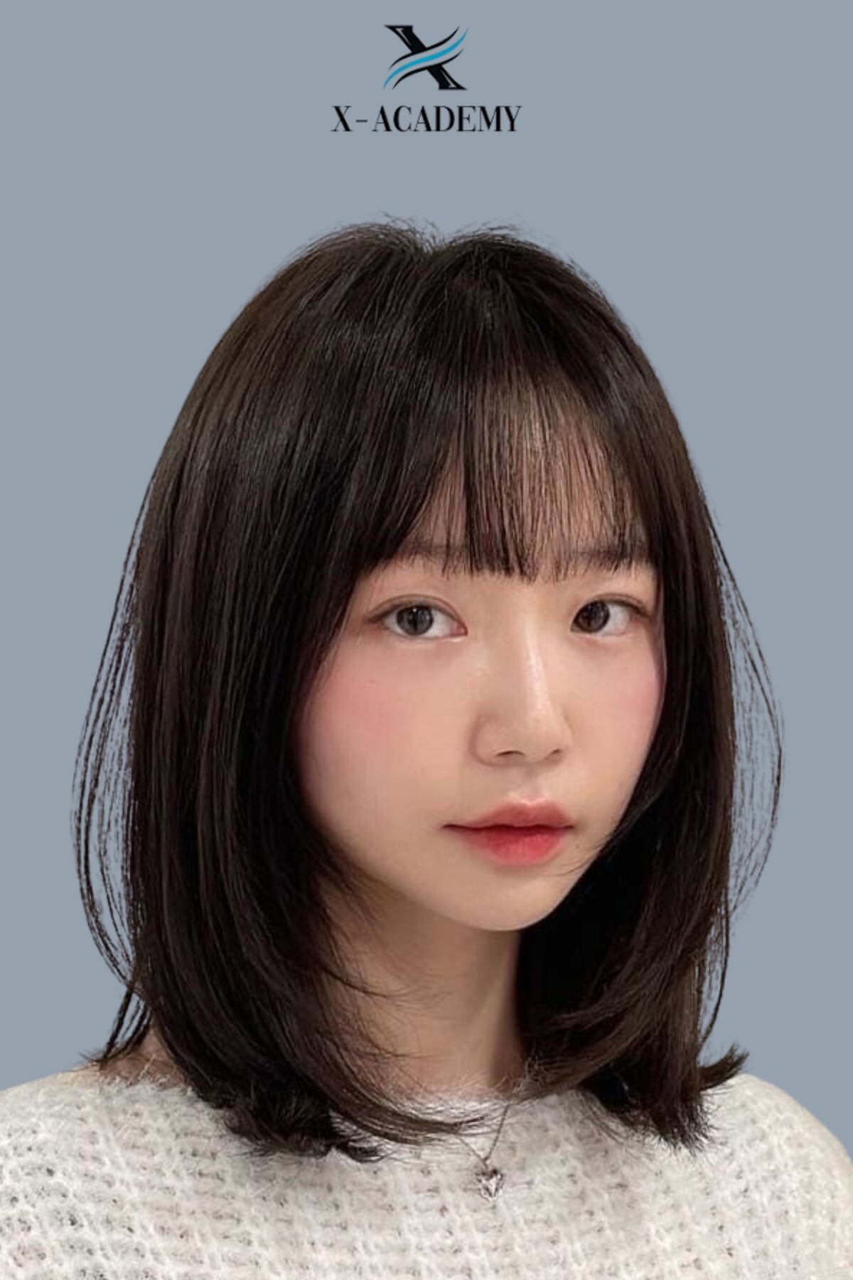 Mái thưa nhẹ nhàng che phần trán, kết hợp với đường cắt bầu gọn gàng. Phù hợp với những người có trán cao hoặc muốn khuôn mặt trông mềm mại hơn.