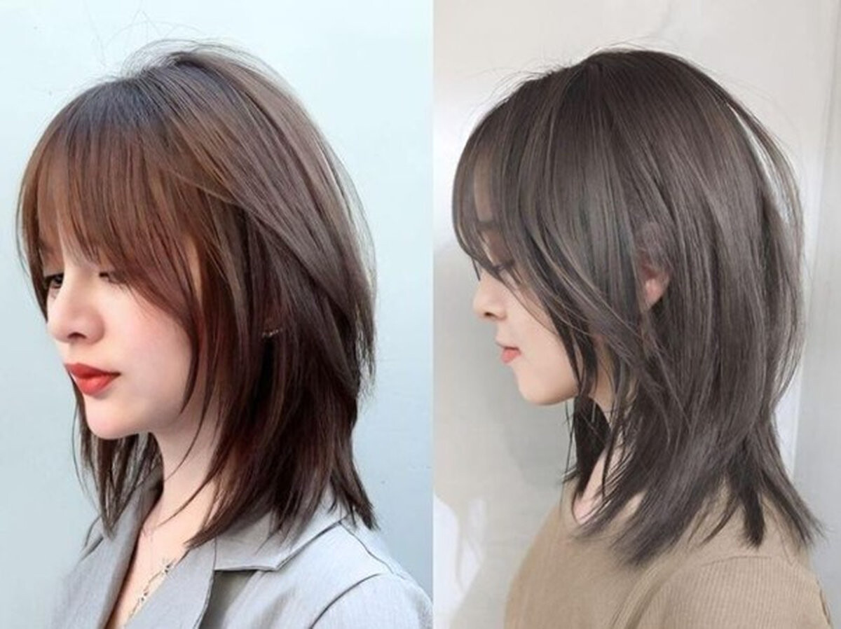 Kiểu tóc mullet layer này có độ dài ngang vai cùng phần mái tỉa gọn gàng, tóc sau dài hơn tóc mái. Đây là kiểu tóc nhẹ nhàng, ít kén mặt, được đánh giá là phù hợp với nhiều độ tuổi.