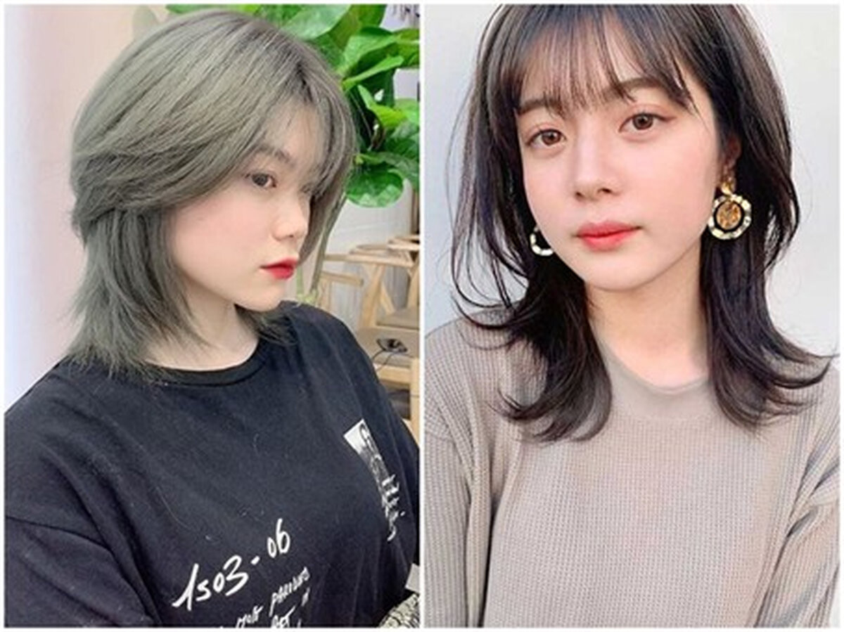Kiểu tóc mullet layer mái ngố tạo kiểu phần mái ngố ở phía trước, ở 2 bên được cắt ôm trọn vào khuôn mặt, còn phần tóc sau thường để ngắn ngang vai. Bạn có thể lựa chọn màu tóc như màu rêu, màu khói hay đỏ trầm,…để tăng phần ấn tượng.