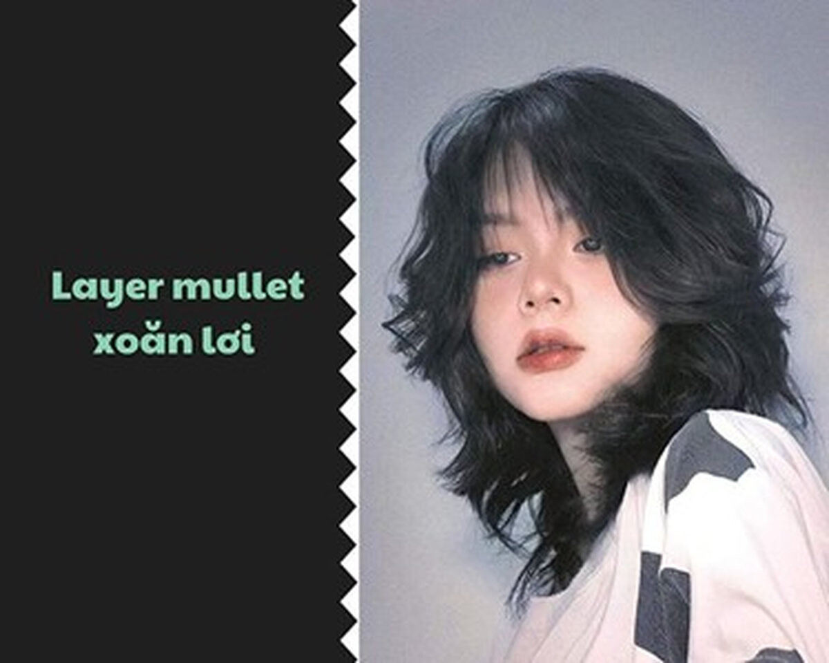 Kiểu tóc này là sự kết hợp giữa Mullet layer và lọn xoăn hay uốn sóng, kiểu này dành cho những cô nàng nhẹ nhàng, thích sự trang nhã. Với phần mái được cắt tỉa ôm vào 2 bên mặt cùng với các lọn tóc phía sau được uốn xoăn hoặc cuốn sóng, dập xù tạo sự bồng bềnh cho các bạn nữ.